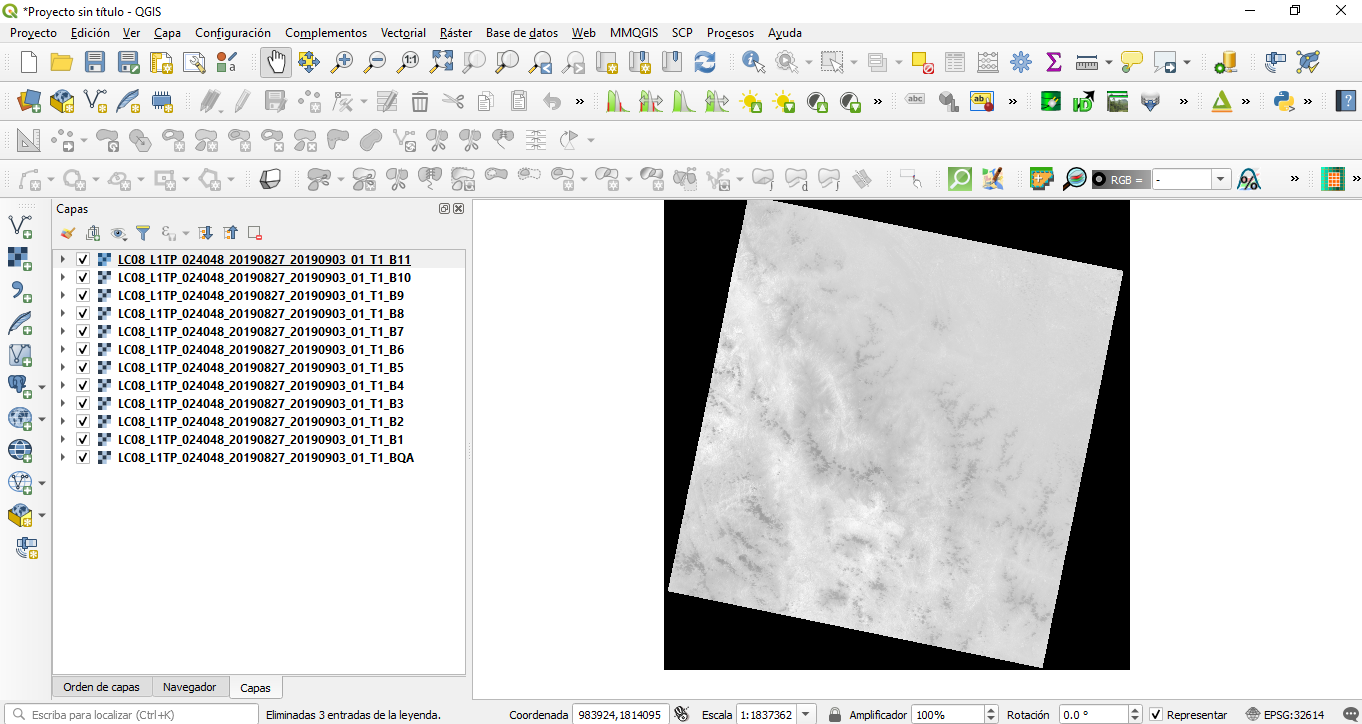 Una vez terminada la descargar, nos dirigimos a QGIS 3 donde realizaremos la combinación de las bandas.
