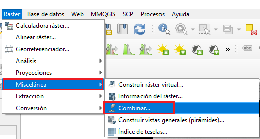 Nos dirigimos a la pestaña de Ráster, una vez ahí seleccionamos la opción combinar.